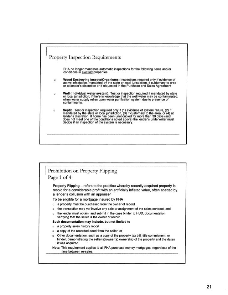 Appraiser Reporting Requirements for Individual Water Supply Systems 8 The requirements in this section of the FHA Single Family Housing Policy Handbook 9 Handbook) contain the Property Acceptability Criteria for FHA mortgage insurance, which 10 include Minimum ... Return Document